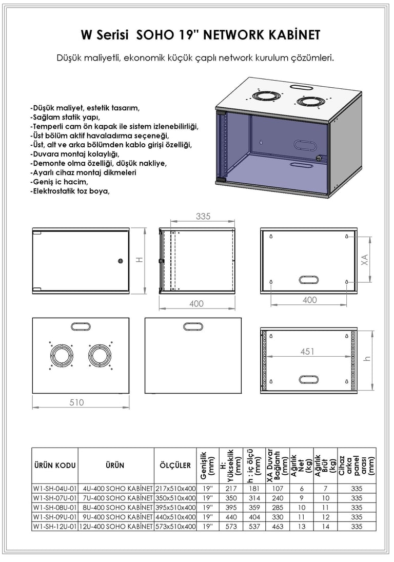 -Üst, alt ve arka bölümden kablo girişi özelliği,